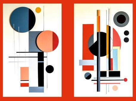 Eddy Vierlinck werkt met rechte en gebogen lijnen, vlakken en verschillende kleurtinten, maar ook met diverse materialen die elk hun eigen karakter meebrengen. Soms blijft een werk vlak en ingetogen, soms