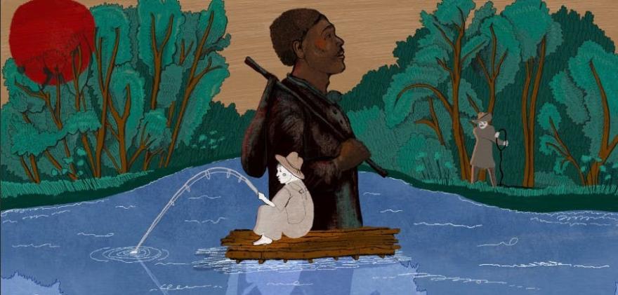 Wanneer Jim hoort dat hij binnenkort verkocht zal worden, en voor altijd gescheiden van zijn vrouw en kind, ontsnapt hij naar een eiland in de rivier de Mississippi. Daar treft hij de witte jongen Huck, die zijn eigen dood in scène heeft gezet om te ontsnappen aan zijn gewelddadige vader. Het is het begin van een legendarisch avontuur: samen vluchten ze op een krakkemikkig vlot over de verraderlijke rivier, richting de vrijheid.