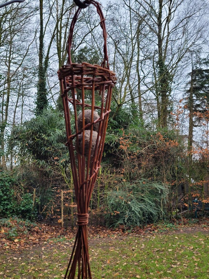 We vlechten met wilgentakken een heel decoratieve en volledig natuurijke mezenbolhouder. We gebruiken hiervoor technieken uit het mandenvlechten.