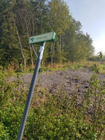 Je volgt de gele pijlen. - Lila route: Op stap met Sint-Maarten in Moerzeke (7,5 km): digitale kaart - gpx route