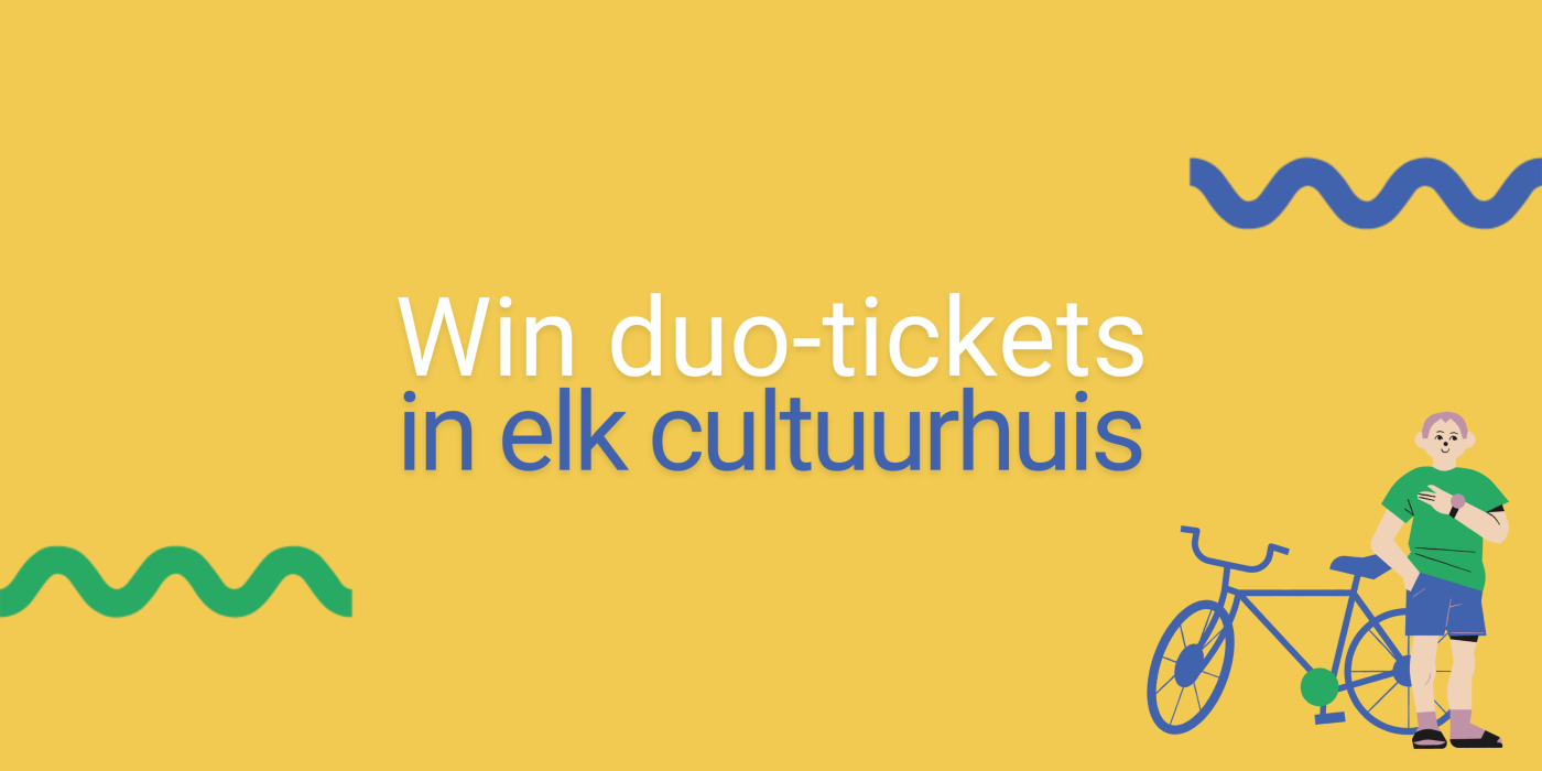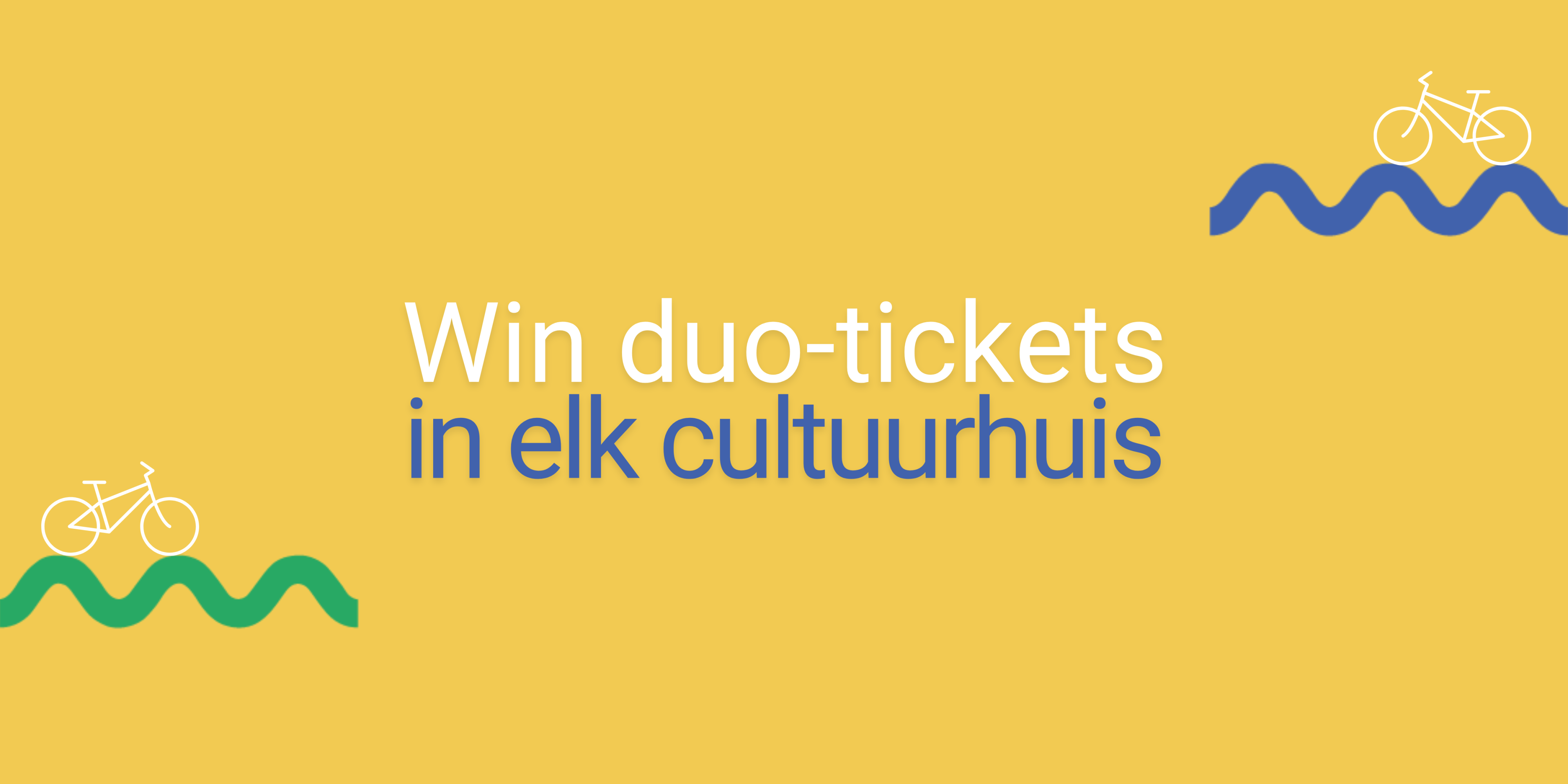 Win duo-tickets in elk cultuurhuis! Onze cultuurcoördinator Tom zal – ongeacht het weer – op 27 augustus een fietstocht maken met een gewone elektrische fiets van cultuurhuis naar cultuurhuis.